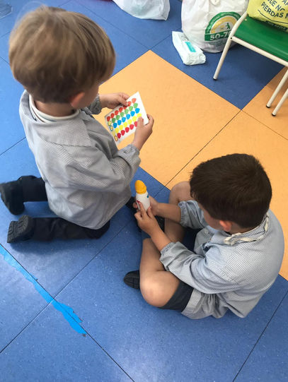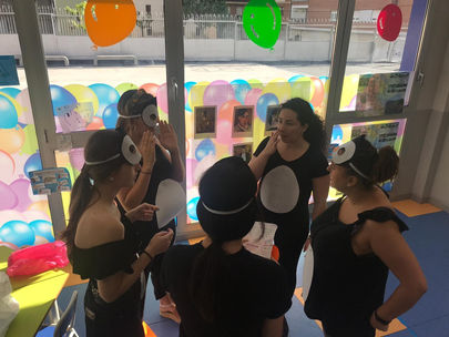 Además del teatro, hicimos unas maracas usando productos reciclados, en este caso botes de actimel, con arroz y un globo. Ellos/as lo decoraron a su manera, además potenciaron el trabajo en equipo ya que la actividad fue en parejas.